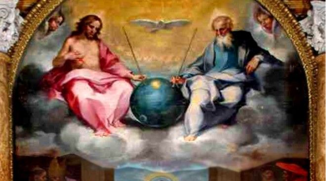 Итальянский художник 16 века Вентура Салимбени создал одну из самых загадочных икон в истории. Она называется «Прославление Евхаристии» и представляет собой триптих, две из трех частей которого абсолютно традиционны. Они изображают святых у алтаря. Однако третья – верхняя часть со Святой Троицей также включает нечто, похожее на космический спутник. На полотне изображен сферический объект металлического цвета с телескопическими антеннами и странными огнями. Некоторые предпочитают считать это изображение доказательством внеземной жизни, другие же принимают это за изображение вселенной вроде глобуса, что вполне допустимо для той эпохи. Странные огни – это солнце и луна, а антенны – символы власти бога, вроде скипетра.