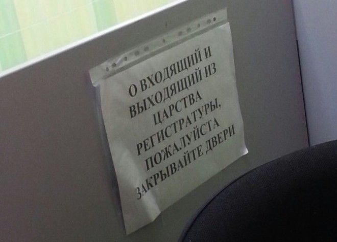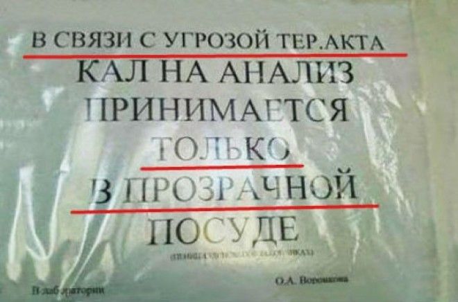 Пока стоишь в очереди, можно поднять себе настроение, читая таблички и плакаты!