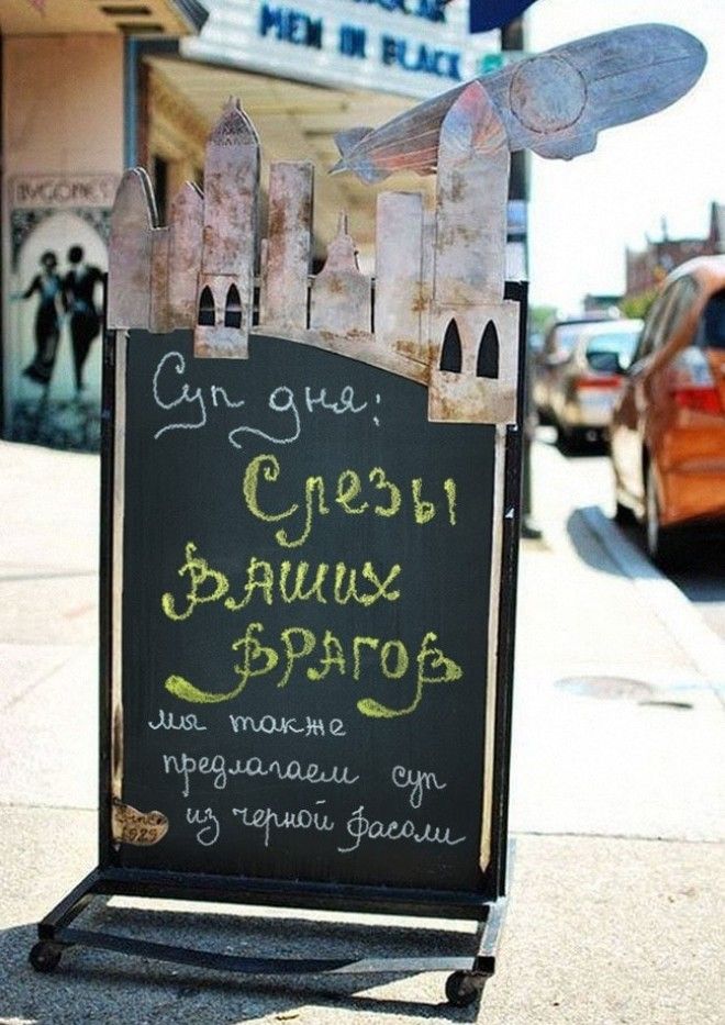 Обычно рекламные баннеры нас раздражают из-за своей навязчивости и однообразия. Хватит это терпеть! Реклама может быть интересной и привлекательной! Некоторые заведения подходят к делу не только креативно, но и с юмором. Вот тогда-то и получаются шедевры, мимо которых невозможно пройти!
